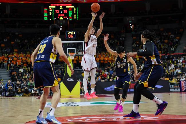 比赛中,广东东阳光队的奎因表现出色,在一次飞身救球中展现了拼搏精神。浙江稠州金租队的陆文博同样有亮眼表现,他不仅上篮得分,还在比赛中尝试了远投三分。此外,刘泽一在比赛中上篮受阻,但依然坚持战斗。浙江稠州金租队在赢下比赛后进行了庆祝。